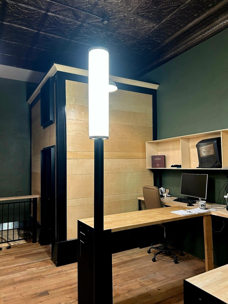 Firm 5’s new headquarters is currently in the construction process! Riley is ensuring that every piece is meticulously detailed and crafted to give a prime example of what excellent craft can look like in your spaces. Stop by anytime to check out what unique things have been done, and our ideas for the new exterior design!
