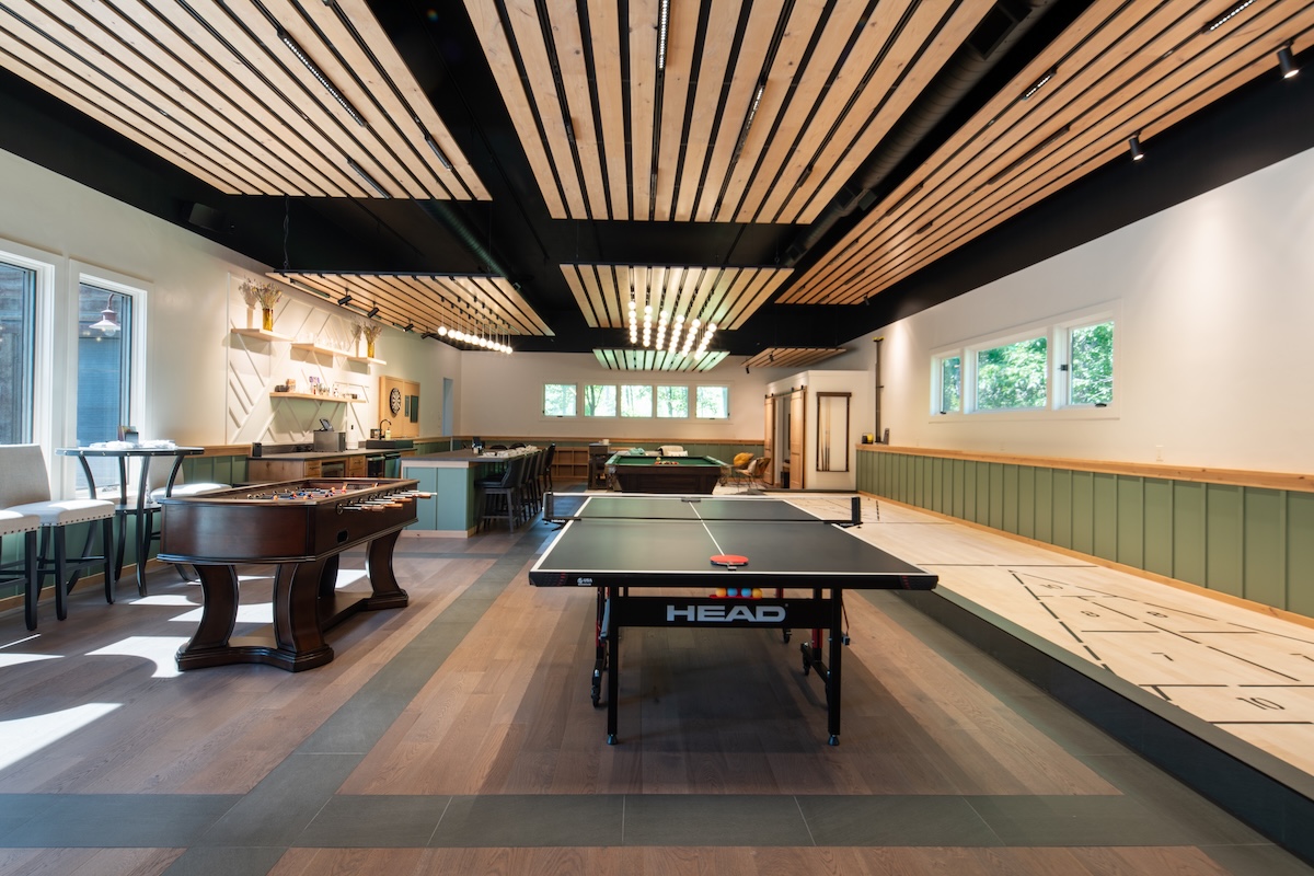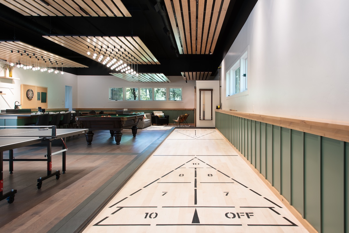 The Clients presented a 3000 sf canvas with a single directive: create a game room. Our imagination filled the space with all the possibilities. Firm 5 designed every element including, lighting, the color palette, backing materials for sound attenuation, doors, trim details, bar selection and wall patterning, photos and even the games selection. This project reflects our belief that great design is scalable and we can assist as little or as much as desired!